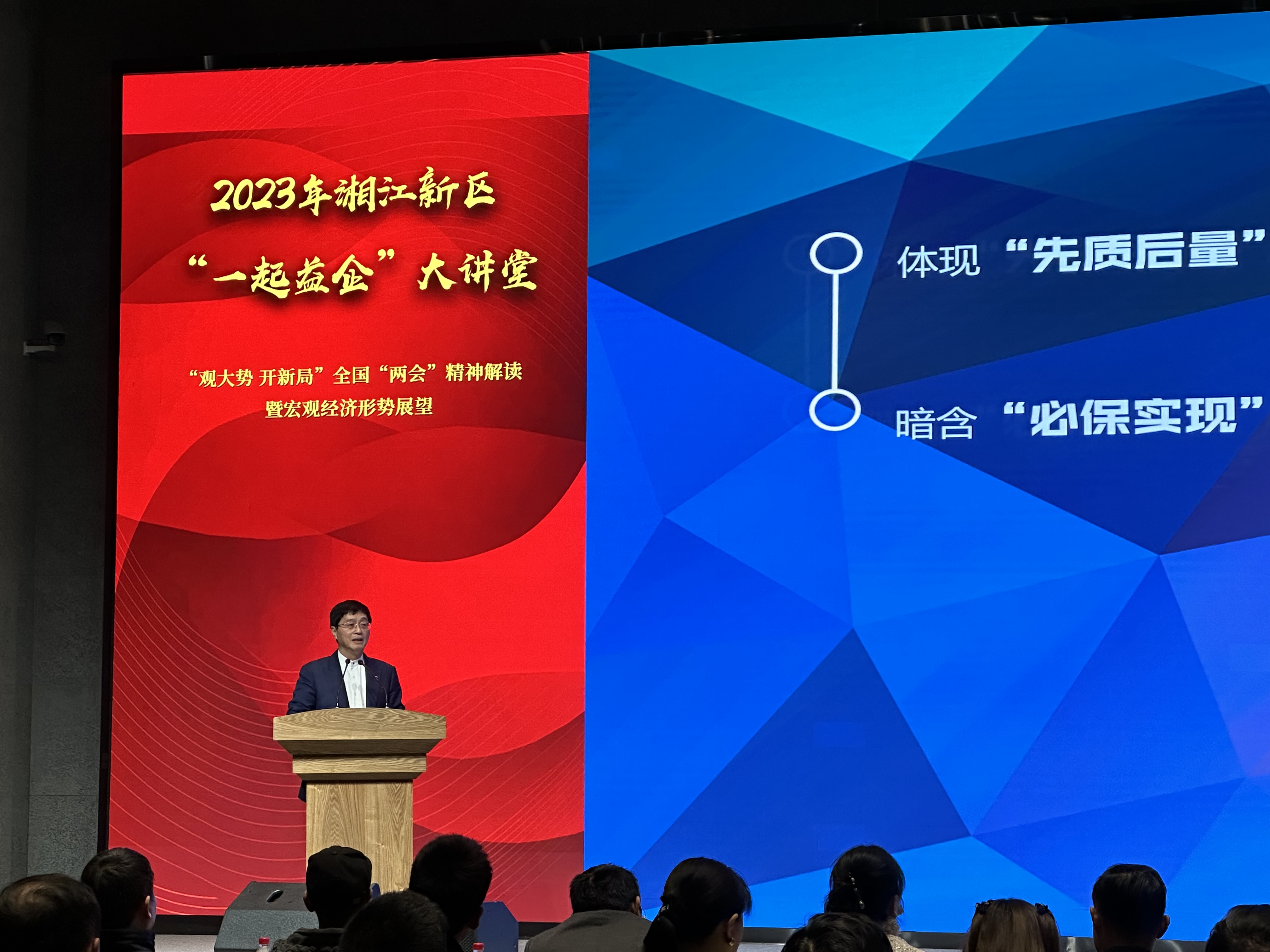 为更好地引导新区广大民营企业家学习领悟全国“两会”精神,把握经济发展趋势,特举办2023年湘江新区“一起益企”大讲堂——“观大势 开新局”全国“两会”精神解读暨宏观经济形势展望专场。