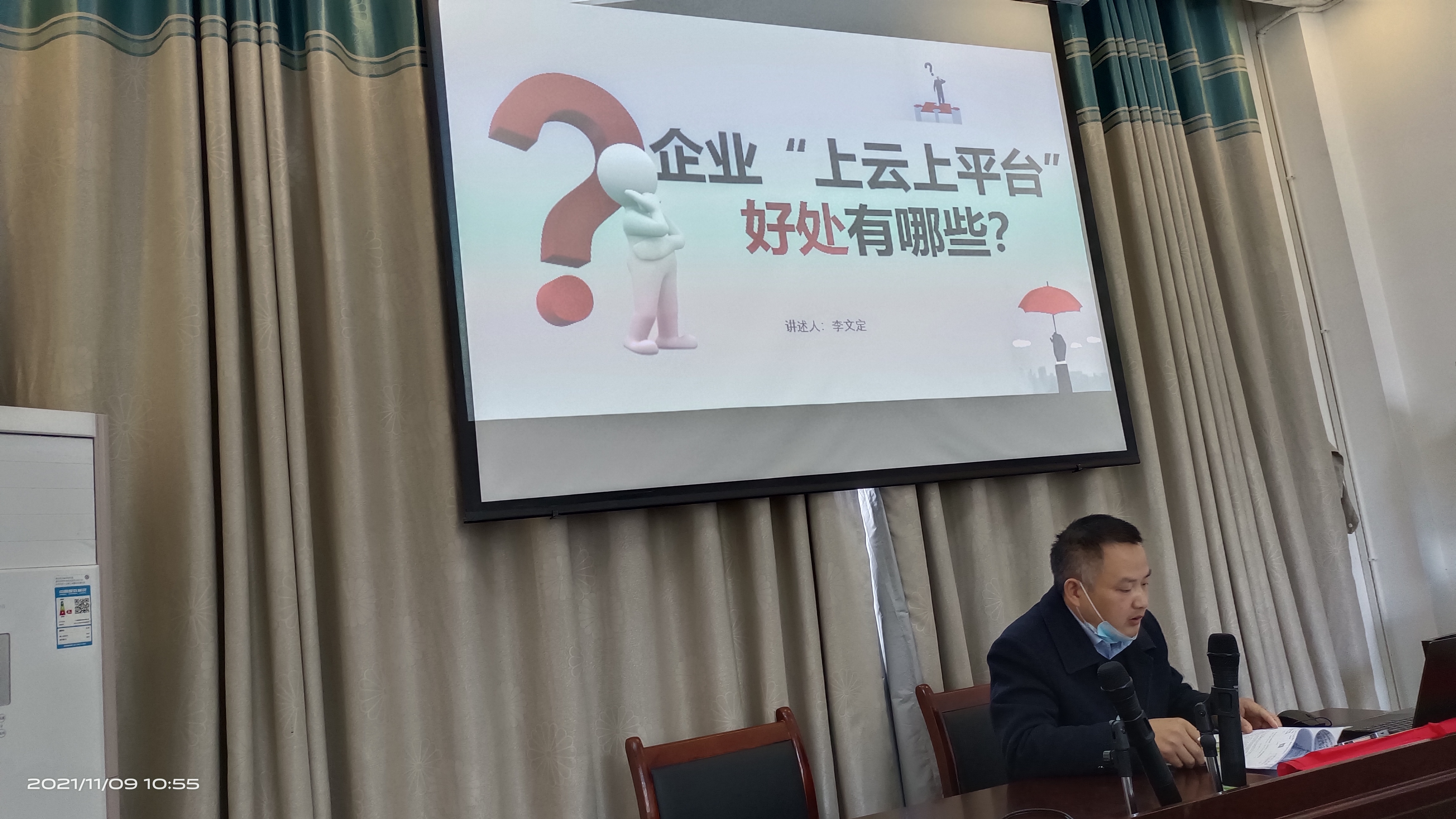 2、授课老师黄海涛作“上云上平台”在中小企业中的应用与工作效率提升的重要性及政策宣讲;