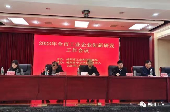 郴州市工业和信息化局 《关于召开全市工业企业创新研发工作会议的通知》 郴州高新区产业发展局,郴州经开区产业发展局,各县市区工信主管部门及产业园区: 根据省工信厅的统一部署,为加强我市工业企业创新研发工作,提升企业的创新能力,助推工业经济高质量发展,经研 究决定召开全市工业企业创新研发工作会议。现将有关事项通知如下: 一、会议时间:2023年2月17日,会期1天 二、会议地点:郴州市中小企业服务中心 11楼会议室 三、会议内容: 1、通报 2022 年全市新产品销售收入占比(数据为 2021年的),2021 年以来各县市区新产品认定申报情况。 2、部署下一阶段新产品重点工作。 3、新产品销售收入统计及新产品认定申报培训。 4、企业金融产品介绍。 四、参加人员: 1、邀请工信厅科技处领导参加会议。 2、郴州高新区产业发展局、郴州经开区产业发展局、各县市区工信主管部门及产业园区分管负责人、具体工作人员各2名。 3、郴州高新区、郴州经开区及各县市区各 10 家重点规上工业企业负责人。 4、市工信局分管领导、科技科全体人员。 5、邀请市统计局分管领导及相关科室负责人参加会议。 五、注意事项: 1、2月17日上午8:00-8:50 点在郴州市中小企业服务中心11 楼会议室(郴州市北湖区郴江路 315号)报到,9:00正式开会。 2、请郴州高新区产业发展局,郴州经开区产业发展局,各县市区工信主管部门通知企业参会人员带上手提电脑。 3、参会人员住宿费用自理。 4、参会回执请于 2月 15 日下午5 点前报市工信局科技科 邮箱,gxkjk2368710@。 5、联系人:朱艳君、胡凌超 2368710(办公室)