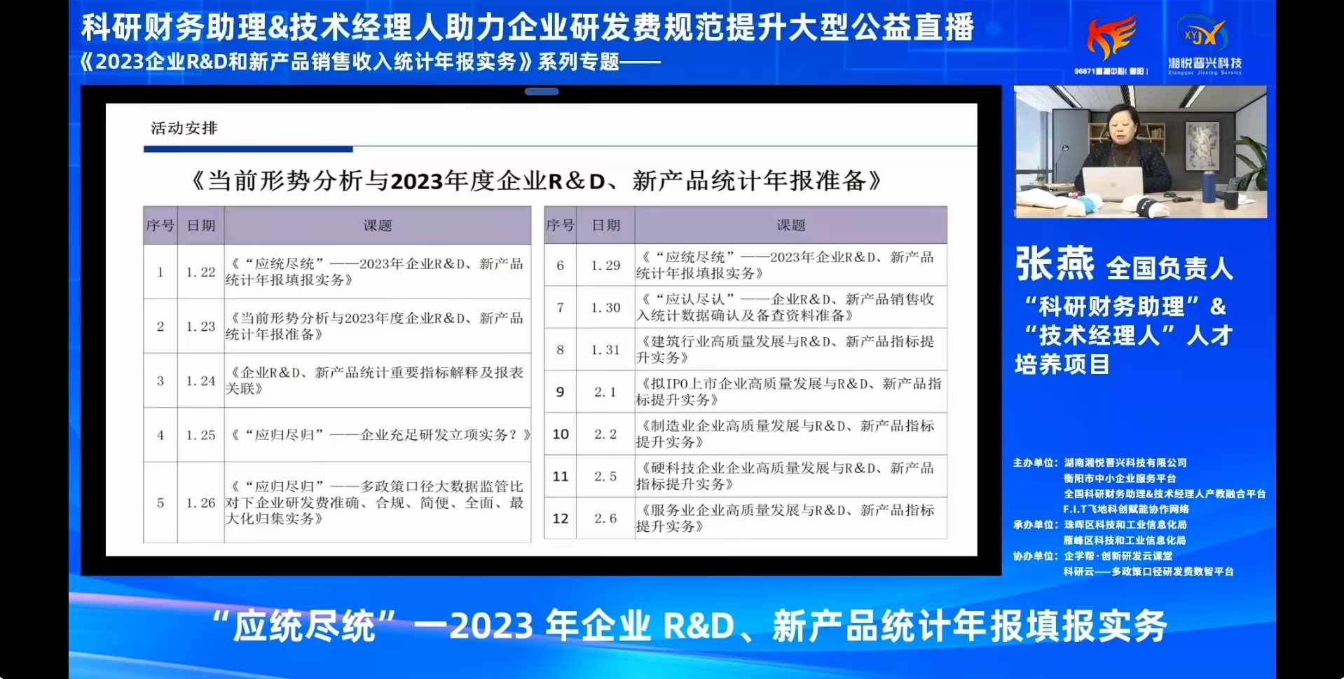 一、活动主题:助力企业研发费规范提升大型公益直播《2023企业R&D和新产品销售收入统计年报实务》系列专题