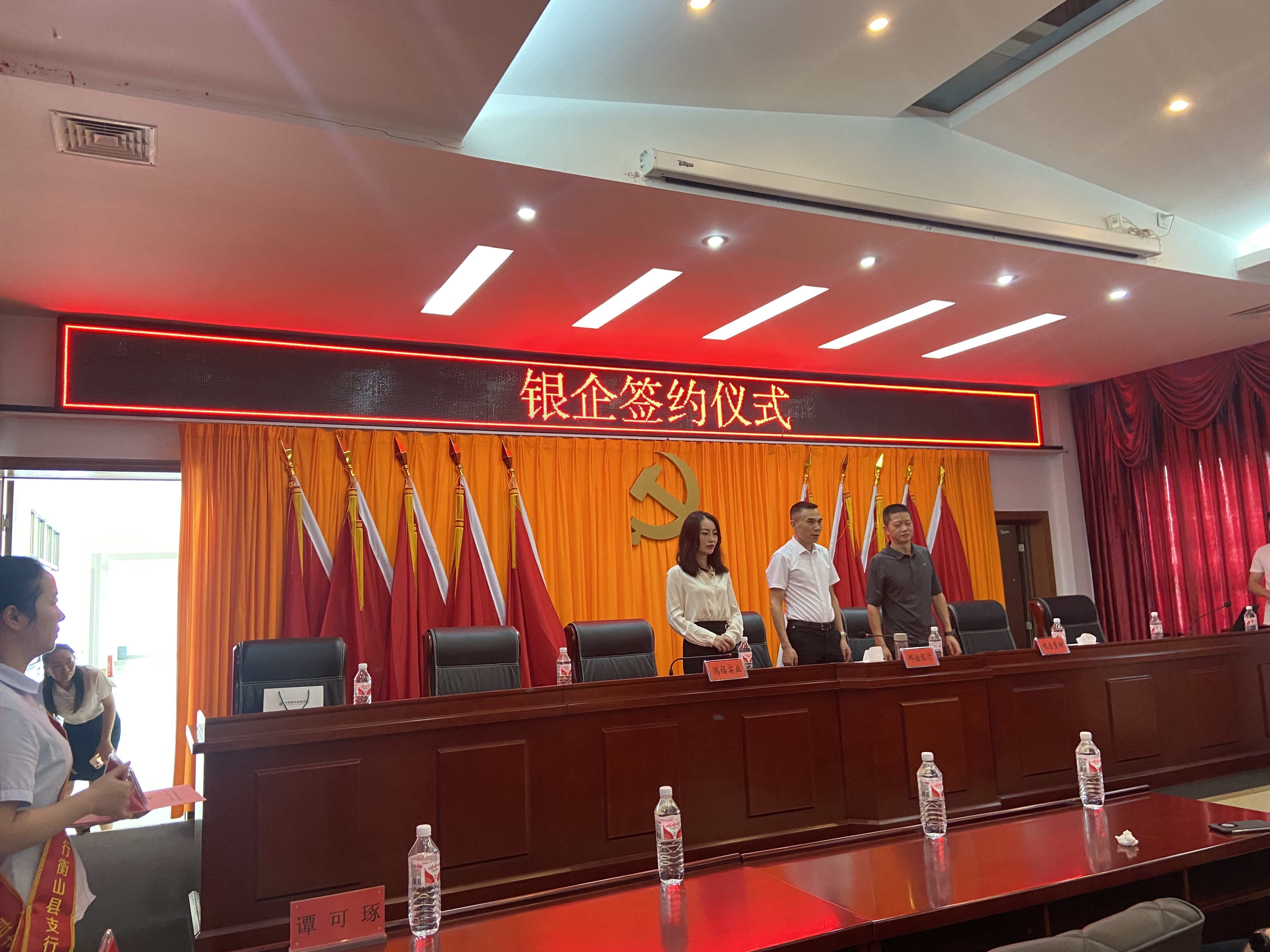 县金融办领导,县科技和工业信息化局领导,市融担公司领导,邮储银行衡阳市分行副行长、邮储银行衡山县支行行长,衡山县规模企业负责人。
