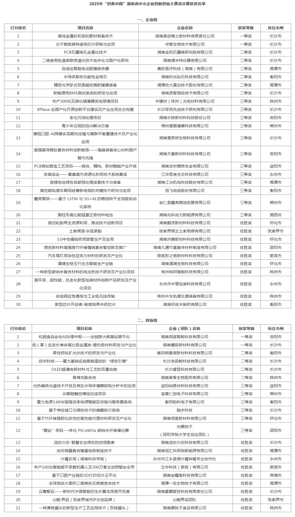 2.2025年“创客中国”湖南省中小企业创新创业大赛省决赛获奖名单