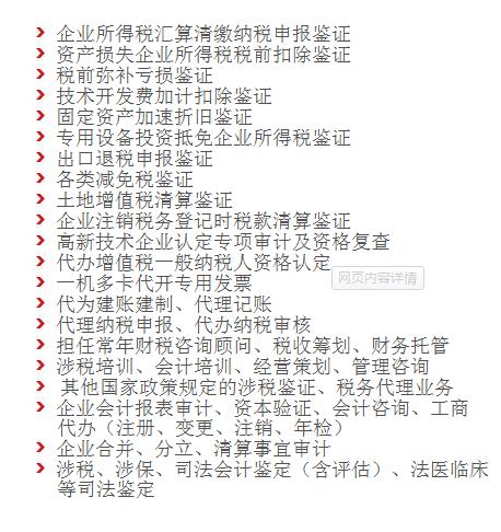 - 其他国家政策规定的涉税鉴证、税务代理业务